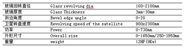 HD20 glass shape edging machine is suitable for processing perimeter and bevel edges of round and oval shaped glass. This machine can also be used for semi-auto grinding of simple special shaped glass, When grinding peripheral edges, it can use three grinding wheels for coarse and fine grinding and polishing. When grinding bevel edges, it can use a bowl shaped grinding wheel, the grinding head can be tilted back, and the bevel angle can be adjusted for end face grinding.